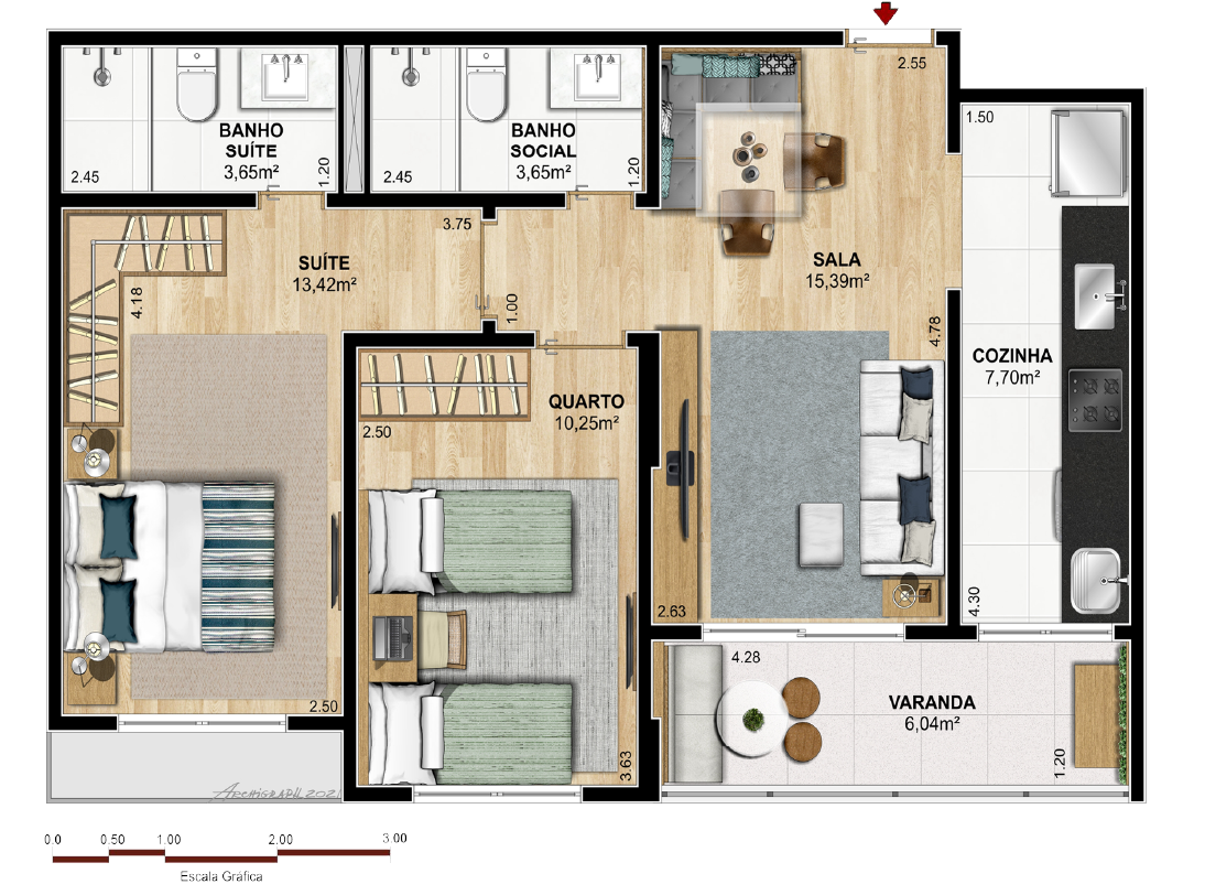 Apartamentos com 02 quartos, sendo 01 suíte, 01 vaga na garagem. Unidades com 02 vagas disponiveis.